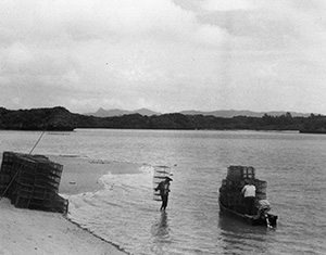 養殖カゴの舟積み