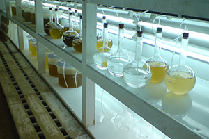 餌として投与されるのは微細藻類の植物プランクトンで、餌料培養室で大量に作られます。