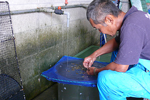稚貝の掃除と選別
