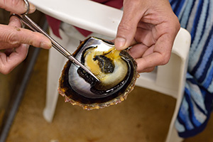 クロチョウガイから真珠を取り出します。