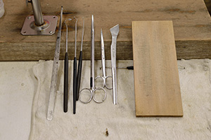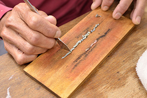 真珠養殖でもっとも重要な作業が、外套膜のピース(組織片)と核を移植する手術、つまり挿核手術です。貝の外套膜は真珠質を分泌し、貝殻を作る役目をします。