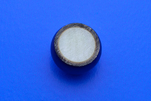 黒蝶真珠を切断すると、白い核の周りに真珠層が巻かれているのが分かります。