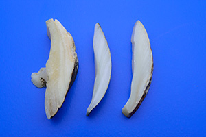 貝殻の厚い部分を短冊形に切断します。