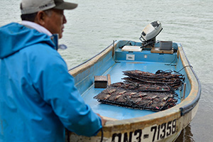 約20日間、おだやかな海の養殖いかだに吊り下げられ、体力の回復を待ちます。