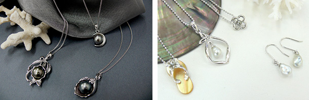 - 黒蝶真珠・白蝶真珠では、お手頃な価格でカジュアルにお使いいただけるシルバーアクセサリー・シリーズ(証明書付)を38,000円(税別)からご用意しております。(左画像)