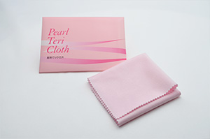 日常のお手入れには、真珠科学研究所開発の「真珠てりクロス」をおすすめします。琉球真珠直営店にて販売を承っております。