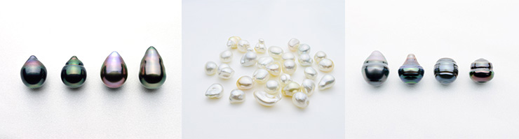 真珠は通常、真円(ラウンド)に近いほど品質が高いと評価されます。また、左右対称のきれいな形をしたドロップ形も、希少価値から特別に評価されます。